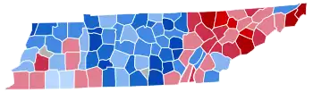 For over a century after the Civil War, Tennessee’s white citizenry was divided according to partisan loyalties established in that war. Unionist regions covering almost all of East Tennessee, Kentucky Pennyroyal-allied Macon County, and the five West Tennessee Highland Rim counties of Carroll, Henderson, McNairy, Hardin and Wayne[3] voted Republican – generally by landslide margins – as they saw the Democratic Party as the “war party” who had forced them into a war they did not wish to fight.[4] Contrariwise, the rest of Middle and West Tennessee who had supported and driven the state’s secession was equally fiercely Democratic as it associated the Republicans with Reconstruction.[5]