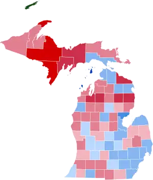 | Montcalm | 3,857 | 49.32% | 3,788 | 48.43% | 69 | 0.89% | 7,821 | ||||