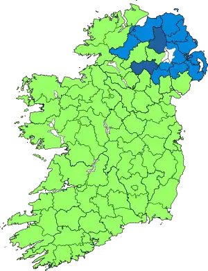 ![]() Results of the 1886 election in Ireland Conservative Liberal Unionist Irish Parliamentary Party | |||||||||||||||||||||||||||||||||||||||||||||