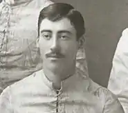 Due to injuries, several of Michigan's best players were unable to participate. Quarterback Royal Farrand was left home with his knee in a cast and was replaced by Ball. Sprague and Townsend from the rush line were injured during practice the week before the trip and were replaced by R. S. Babcock and Button.[11] DeHaven recalled, "We were totally unprepared, but I got five starters to go, and with Harless and I (we wanted to see our South Bend friends) and four of our friends, who had never played, and a referee, we went."[10] In his history of the Michigan-Notre Dame rivalry, John Kyrk contends that two of the players who DeHaven recruited for the trip, G. Briggs and E. Rhodes, were non-student "ringers."[10]