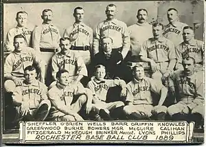 The 1890 Rochester Broncos season was the team's only season in Major League Baseball. In 1889, the team had played in the minor league International Association as the Rochester Jingoes. The Broncos went 63–63 during the season and finished 5th in the American Association. They went 40–22 at home, but 23–41 on the road. After the season, the team returned to the minor leagues, moving to the Eastern Association as the Rochester Hop Bitters.