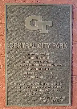 Georgia Tech's first ever game took place against Mercer on November 5, 1892, at the Central City Park in Macon, Georgia. The game coincided with Macon's Carnival Week. The game was originally scheduled to have been played on October 29, but was postponed because Mercer had been unable to secure the fairgrounds.[11] The winner of the game was slated to play Vanderbilt, though Georgia Tech played Vanderbilt the next week anyway despite its loss to Mercer.