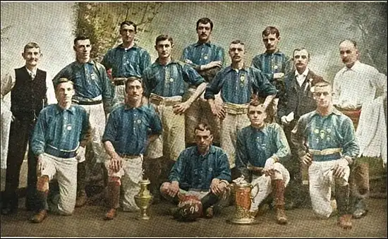 True Blues: GK Fred Allen, FB W.Alexander, H.McCrowe, HB R.Hall, G.Eaton, J.Upton, FW E.Grewcock, J.Oldfield, Robert Spencer, Harry Lander, Tommie Turner. Caledonians: GK Wilkie, FB J.Wilson, W.Mortimer, HB J.McCance, W.Morton, H.Singleton, FW P.Cooper, G.Govern, J.Nagle, A.Burns, J.Kerr.