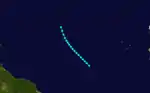 Late on September 1, the hurricane made landfall east of Jacmel, Haiti with winds of 80 mph (130 km/h). By 1800 UTC, it weakened to a tropical storm. The storm emerged into the Atlantic Ocean early on September 2, after weakening further. While passing just east of the Turks and Caicos Islands early on September 3, the storm re-strengthened and attained hurricane status again. Several hours later, it strengthened into a Category 2 hurricane and peaked with winds of 105 mph (169 km/h). After weakening to a Category 1 hurricane late on September 4, the storm passed northwest of Bermuda.[2] Hurricane-force winds caused considerable damage on the island.[9] At 1200 UTC on September 5, the hurricane became extratropical.[2]