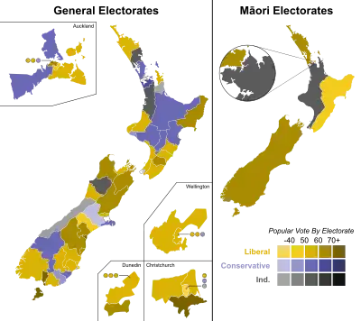 - ↑ Note that the affiliation of many Māori candidates is not known.