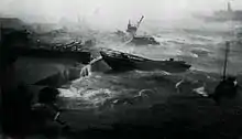 Along the praya from West Point (Sai Wan) to East Point (Causeway Bay), many sampans and lighters were damaged and broken down into pieces, the sea passage was obstructed by the floating objects from boat wreckage. Within two hours of the typhoon strike, some European and Chinese bystanders rescued more than 700 people that had fallen from the capsized boat at Wan Chai and East Point (Causeway Bay) areas. From the Kowloon Wharf, the Docks to Sham Shui Po waterfront, sampans and cargoes could not escape the damage and destruction, scattering down the praya. There were casualties in shipwrecks near Kowloon Star Ferry Wharf, such as from the two river steamers Kwangchow and Hongkong, both sunk in the storm with crews and passengers aboard, causing the loss of 300–400 lives. The Wingchai ferry, heading for Macao with 200 passengers on board, was driven back by the typhoon and took refuge at Stonecutters Island and later drifted to the rocks; about twenty of those died.[4]