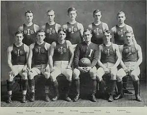 The 1907–08 season saw the third coach in three years take the reins at the University of Illinois. Fletcher Lane was Illinois’ third coach, but lasted just one season. Even though he led his team to a 20–6 record, the university, as well as the athletes, deemed Lane's coaching style as subpar.[1] Lane's team benefited from a long Southern trip in which the team beat several YMCA and club teams from Tennessee, Texas, Alabama, and Georgia. The starting lineup consisted of forwards Albert Penn and H. J. Popperfuss, center Avery Brundage, and guards Thomas E. Thompson and captain M. G. Dadant.[2]