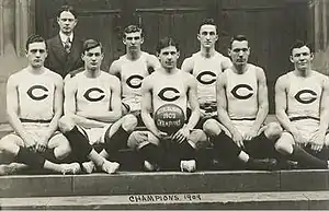 The 1908–09 Chicago Maroons men's basketball team represented the University of Chicago in intercollegiate basketball during the 1908–09 season. The team finished the season with a 12–0 record[1] and was retroactively named the national champion by the Helms Athletic Foundation and the Premo-Porretta Power Poll.[2][3] This was the third consecutive season for which Chicago was later named the Helms national champion.[2] The team played their home games on campus at Frank Dickinson Bartlett Gymnasium.