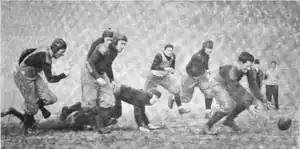 As the work at Whitmore Lake concluded, the Detroit Free Press wrote that the team was "rounding into form rapidly" and looked "like a machine."[15] The Free Press opined that the backfield showed plenty of speed, and the line appeared to be Michigan's strongest in years.[16] Pre-season practice continued at Ferry Field during the first week of October.[17][18][19][20]