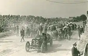 The event was marred by the deaths of two-time and defending winner David Bruce-Brown and his mechanician Tony Scudellari in a practice accident.[3][4] Bruce-Brown's car was repaired by Barney Oldfield and driven to a fourth-place finish.[1] Ralph DePalma and his mechanician Tom Alley were injured when DePalma's Mercedes touched the rear of Bragg's Fiat and overturned, ejecting its occupants.[5]