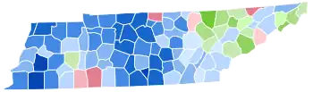 For over a century after the Civil War, Tennessee was divided according to political loyalties established in that war. Unionist regions covering almost all of East Tennessee, Kentucky Pennyroyal-allied Macon County, and the five West Tennessee Highland Rim counties of Carroll, Henderson, McNairy, Hardin and Wayne[1] voted Republican – generally by landslide margins – as they saw the Democratic Party as the “war party” who had forced them into a war they did not wish to fight.[2] Contrariwise, the rest of Middle and West Tennessee who had supported and driven the state’s secession was equally fiercely Democratic as it associated the Republicans with Reconstruction.[3] After the disfranchisement of the state’s African-American population by a poll tax was largely complete in the 1890s,[4] the Democratic Party was certain of winning statewide elections if united,[5] although unlike the Deep South Republicans would almost always gain thirty to forty percent of the statewide vote from mountain and Highland Rim support.