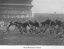 After arriving back at school, the team registered for classes, had a weekend break and then began to practice at Forbes Field in preparation for the opening game against Westminster.[20]