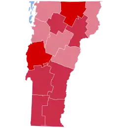 | Chittenden | 3,786 | 56.85% | 2,772 | 41.62% | 43 | 0.65% | 58 | 0.87% | 1 | 0.02% | 1,014 | 15.23% | 6,660 |