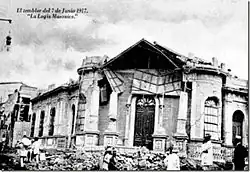 The 1917 San Salvador earthquake occurred on June 7 at 18:55 local time near the Salvadoran capital. The hypocenter of the Mw 6.7 was at a shallow depth of 15 km (9.3 mi), and occurred along a shallow crustal fault near San Salvador.[1] The earthquake caused significant destruction of the city and left approximately 1,050 dead. It was followed by an eruption on San Salvador that killed another 1,100. Only behind the earthquake of 1986, it is the second deadliest in El Salvador's history.[2]