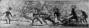 Notre Dame player being tackled by an Army player during the October 18 game at New York City's Polo Grounds