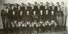 The starting lineup was Gamble (left end), Wight (left tackle), Levy (left guard), H. Wilson (center), Blackledge (right guard), P. Brown (right tackle), D. Wilson (right end), Lautenschlaeger (quarterback), Flournoy (left halfback), Morgan (right halfback), Lamprecht (fullback).[26][27]