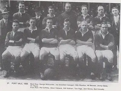 In the FA Cup, it was a repeat of the 1925–26 season as the club were drawn against Manchester United at home.[1] The First Division club returned to Old Trafford with a 3–0 victory.[1] The end of season North Staffordshire Royal Infirmary Cup was cancelled, with Vale seemingly too despondent to field a team.[1]