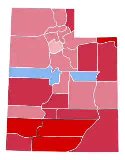 Nonetheless, the LDS endorsement did cause Utah to prove Smith's eleventh-strongest state – and his strongest outside the urban Northeast or the "Solid South" – voting 9.70 percent more Democratic than the nation at-large.[3] Smith divided the sizable 1924 La Follette vote with Hoover, and carried the ethnically diverse mining-based Carbon County by fourteen, and also won a five-point majority in Juab County in the state's west for the first Republican losses in any Utah county since 1916 when anti-war sentiment shifted the state to Woodrow Wilson.[4]