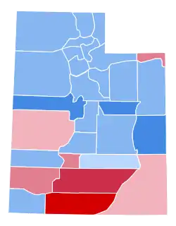 Utah, like every state west of the Appalachian Mountains, voted for Franklin D. Roosevelt over Herbert Hoover by a substantial margin, giving the first Democratic victory in the state since 1916 when anti-war sentiment had shifted the state to Woodrow Wilson.[1] Utah's swing to the Democrats was 23.19 percentage points, much smaller than the national swing of 35.18 percentage points, as the anti-Catholicism which marred the preceding election was less prevalent among the LDS hierarchy than in the South or the Pacific Northwest. Consequently, for this election Utah voted more Republican than the nation at-large for the first time in twenty years, by a margin of 2.29 points on a two-party basis.[2] Hoover managed to retain pluralities in seven of Utah's twenty-nine counties, although in San Juan County Hoover won by only a solitary vote and in sparsely populated Daggett County by just eleven. This was nonetheless equal with Missouri[lower-alpha 1] and behind only Kansas[lower-alpha 2] as the most counties in one state west of the Mississippi – in all of which Hoover retained only forty-six counties out of 1,161 – remaining Republican.