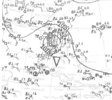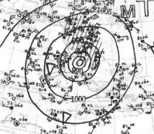 The season was continuously active, with six storms forming during the month of August alone.[11] At the time, many storms received the distinction of being the earliest nth storm to form, such as the earliest fifth tropical storm to form in a season. Most of the records were broken in later years.[12] During the season, the U.S. Weather Bureau issued storm and hurricane warnings for eight storms, including coastal portions of Texas, as well as from Florida to Massachusetts, forcing the evacuations of thousands of people. The deadliest storm of the season was a hurricane that struck Tampico, Mexico, killing over 184 residents. The costliest hurricane was the Chesapeake–Potomac hurricane, which caused $27 million in damage from North Carolina to New Jersey.[nb 4] The hurricane produced rainfall that resulted in severe crop damage in Maryland.[10]