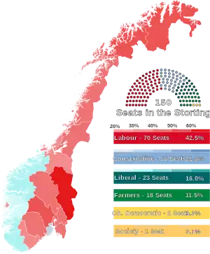 Parliamentary elections were held in Norway on 19 October 1936,[1] the last before World War II and the German invasion of Norway. The result was a victory for the Labour Party, which won 70 of the 150 seats in the Storting.[2]