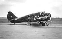 - ↑ The four Stinsons were registered VH-UGG (Lismore), VH-UHH (Brisbane), VH-UKK (Grafton) and VH-UYY (Townsville).[7][8] Airlines of Australia and Australian National Airways were competitors until March 1937 when ANA acquired 60% of the shares in AoA. On 1 July 1942 ANA acquired the remaining 40% of the shares in AoA. Over the next six months all AoA's aircraft were re-painted with ANA's all-silver colour scheme and re-branded with new names – Townsville was re-named Tokana, and Grafton was re-named Binana. ANA made a practice of naming its aircraft with names ending in ana.[1][7]
