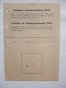 Parliamentary elections were held in Finland on 17 and 18 March 1945. The broad-based centre-left government of Prime Minister Juho Kusti Paasikivi (National Coalition/Independent) remained in office after the elections.