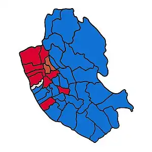 Map of Liverpool showing wards won (first placed party)[1]