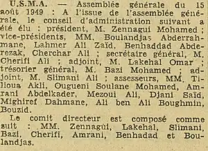 General meeting of USM Alger, August 15, 1949 in L'Écho d'Alger.