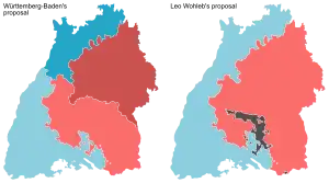 Proposed voting areas. Left: the proposal of the Württemberg-Baden government. Right: Leo Wohleb's proposal.