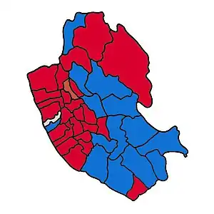 ![]() Map of Liverpool showing wards won (first placed party)[1] | ||