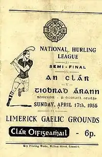 17 April 1955 Semi-final Tipperary 3-8 - 0-6 Clare Gaelic Grounds, Limerick