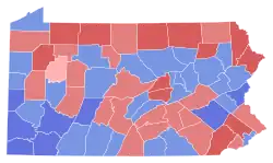 Leader performed not only well in the Democratic strongholds of Philadelphia, Pittsburgh, and Scranton, but won 34 of the state's 67 counties. His impressive win included capturing victories in many GOP strongholds such as Bucks County (one of the heavily Republican suburban Philadelphia counties), winning over 60% in his home of York County, and becoming one of the only Democratic candidates for any major statewide office to take the state's rural, conservative center.[3]