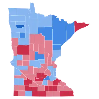 | Wabasha | 3,628 | 44.26% | 4,566 | 55.70% | 3 | 0.04% | 0 | 0.00% | -938 | -11.44% | 8,197 |