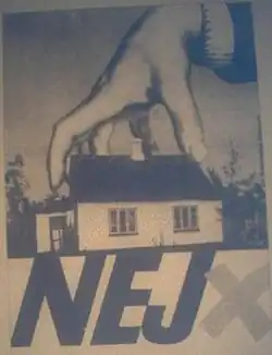 Campaign poster with the word NEJ (English: NO)