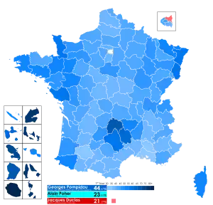 The second round was held on 15 June 1969. About 69% of eligible voters participated. Pompidou was elected President of France with a comfortable majority of more than 58%.[1]