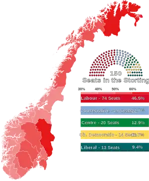 Social democracy | Centre-left | Trygve Bratteli | 43.1% | 68 / 150 | |
