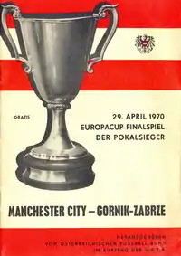 The 1970 European Cup Winners' Cup Final was a football match between Manchester City of England and Górnik Zabrze of Poland on 29 April 1970 at Praterstadion in Vienna, Austria. It was the final match of the 1969–70 European Cup Winners' Cup and the tenth European Cup Winners' Cup final. Both sides made their first appearance in a European final. Manchester City won the match 2–1 thanks to goals by Neil Young and Francis Lee. The result was City's lone European triumph for more than 50 years, until their victory in the 2022–23 UEFA Champions League.[1][2]