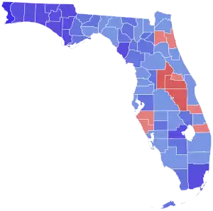 Askew: 50–60% 60–70% 70–80% 80–90% Kirk: 50–60% 60–70% | ||||||||||||||||||||