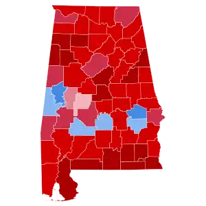 | Talladega | 12,763 | 73.12% | 4,567 | 26.16% | 125 | 0.72% | 8,196 | 46.96% | 17,455 |