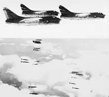 The PAVN fired two SA-2 Surface-to-air missiles (SAMs) at a USAF F-4 Phantom near Tchepone, showing the continuous improvement of PAVN air defences in Laos. A USAF F-4 fired two missiles at a radar site in North Vietnam in a "protective reaction" strike while escorting B-52s in a bombing raid on the Ban Karai Pass.[21]