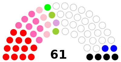 Christian Democracy was by far the largest party, largely ahead of the Italian Communist Party which came second. After the election Christian Democrat Antonio Comelli formed a government with the Italian Socialist Party (which left in 1975), the Italian Democratic Socialist Party and the Italian Republican Party.[1]