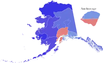 ![]() ![]() Results by borough and census area Gravel: 50–60% 60–70% 70–80% 80–90% Lewis: 50–60% | |||||||||||||||||