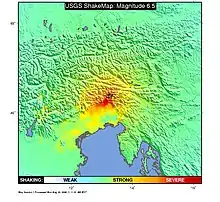 USGS ShakeMap showing the intensity of the 1976 Friuli earthquake