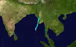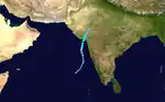 This system formed on 6 September and rapidly intensified into a very severe cyclonic storm the next day. The storm then made landfall at Contai in West Bengal on September 11. Its remnants tracked until Madhya Pradesh and dissipated on 16 September. The storm killed 40 people and 4,000 cattle. Up to 1.25 lakh hectares crops were damaged in India. In Contai, wind speed attained speeds as high as 155 kph at the time of landfall.[3]
