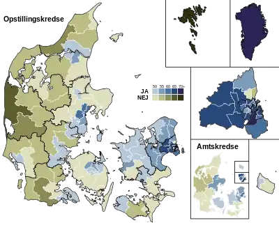 A referendum on lowering the voting age from 20 to 18 was held in Denmark on 19 September 1978.[1] It was held after the Danish government lowering the age of majority from 20 to 18 in 1976. The change was approved by 53.8% of voters with a turnout of 63.2%.[2] The electoral age had previously been lowered from 21 to 20 in a 1971 referendum, after a 1969 referendum had rejected lowering the electoral age to 18.[3]