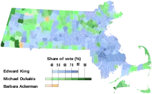 King upset Dukakis 51% to 42% with Ackerman receiving the remaining 7%.