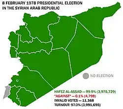 Presidential elections were held in Syria on 8 February 1978.[1] There was only one candidate, Hafez al-Assad, with voters asked to approve or reject his candidacy. A reported 99.9% of voters voted in favour, with a turnout of 97%.[2]