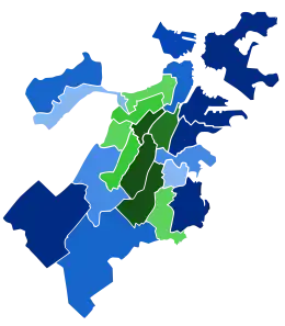 Both Flynn and King worked to build progressive coalitions, and both pledged to dedicate themselves to working across ethnic divides in the city. In the five weeks leading up to the general election, the two candidates held more than fifty local neighborhood debates.[19] King was the first African American to be a candidate in a Boston mayoral general election.[19][20][21] The campaign was largely peaceful. Only a handful of isolated incidents of racial violence occurred during it.[19] King secured the African American vote by wide margins and significant support among many other ethnic groups. However, Flynn benefited from being an Irish-Catholic with roots in South Boston.[22]