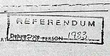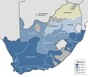 - ↑ "Notice 874 of 1983: Result of the referendum held on 2 November 1983". Government Gazette of the Republic of South Africa. 219 (8960): 27. 11 November 1983.